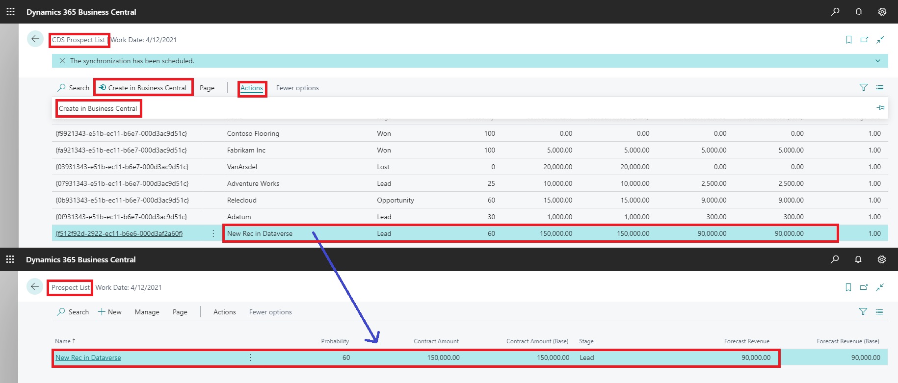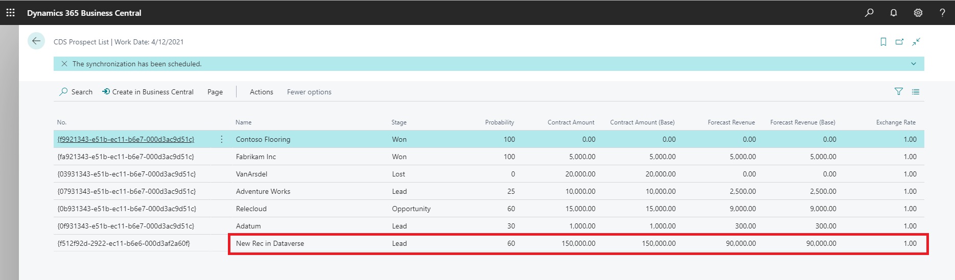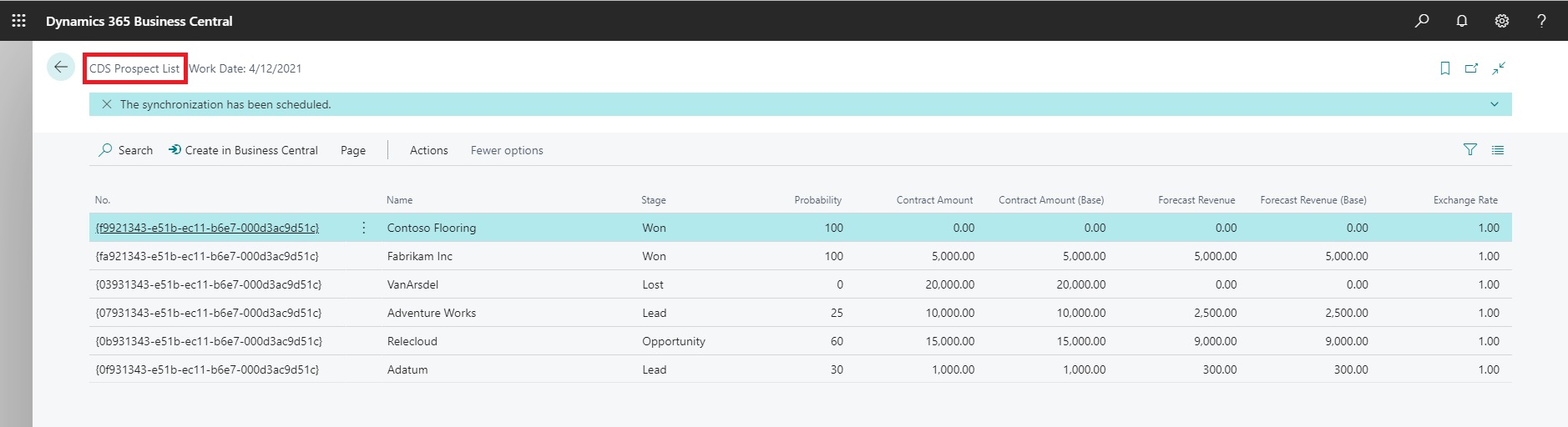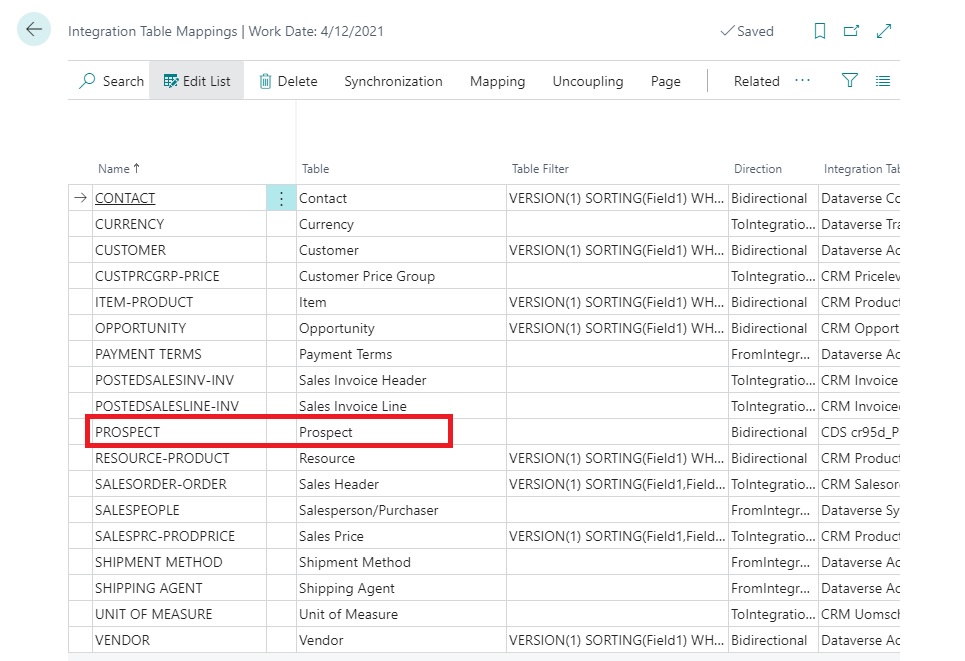 If you remember on CDS Prospects Page we have written code on OnInit trigger to run codeunit – CRM Integration Management, so when page is opened, the data is synchronized to CDS Prospects Page.