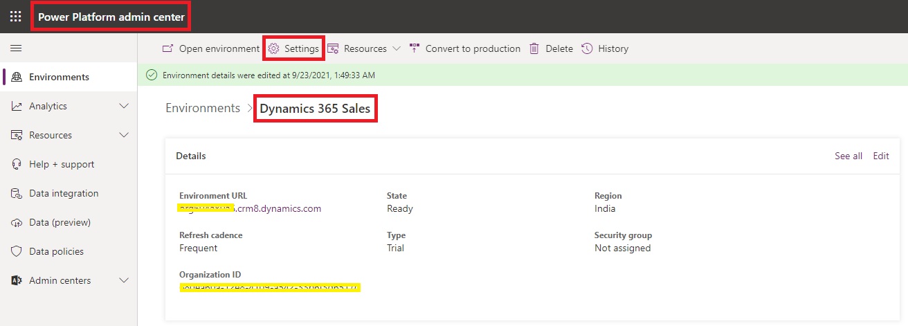 Open your Dynamics 365 Sales Environment and Go To Settings.