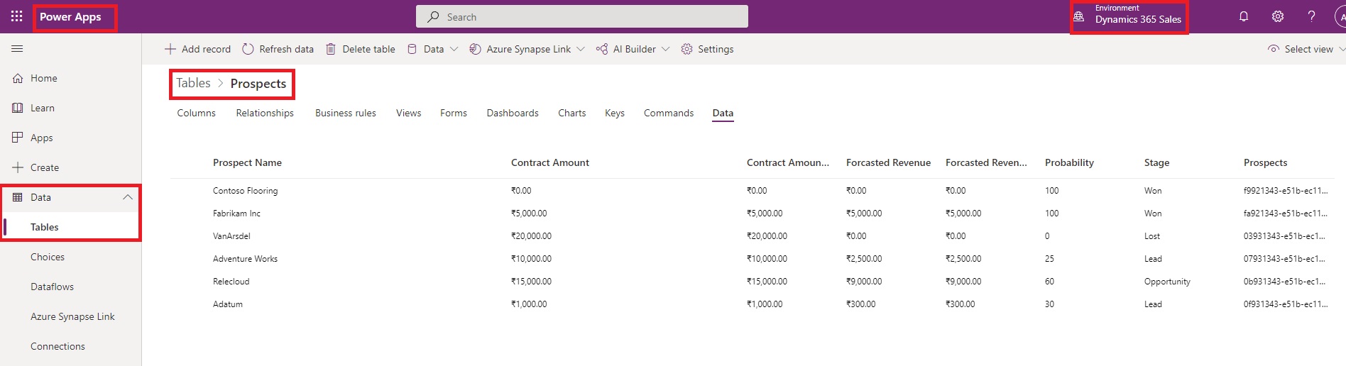 We have below data in Dataverse Prospects table: