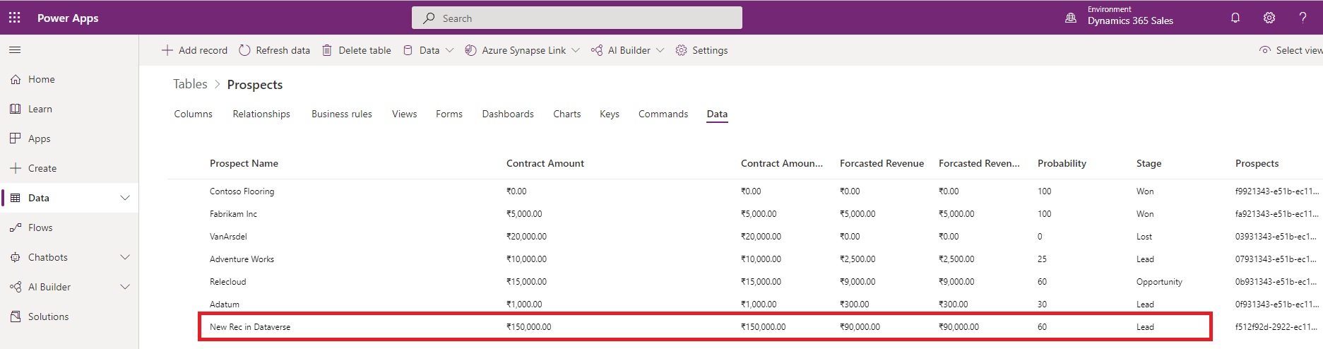 First we will Add one Record in Dataverse: